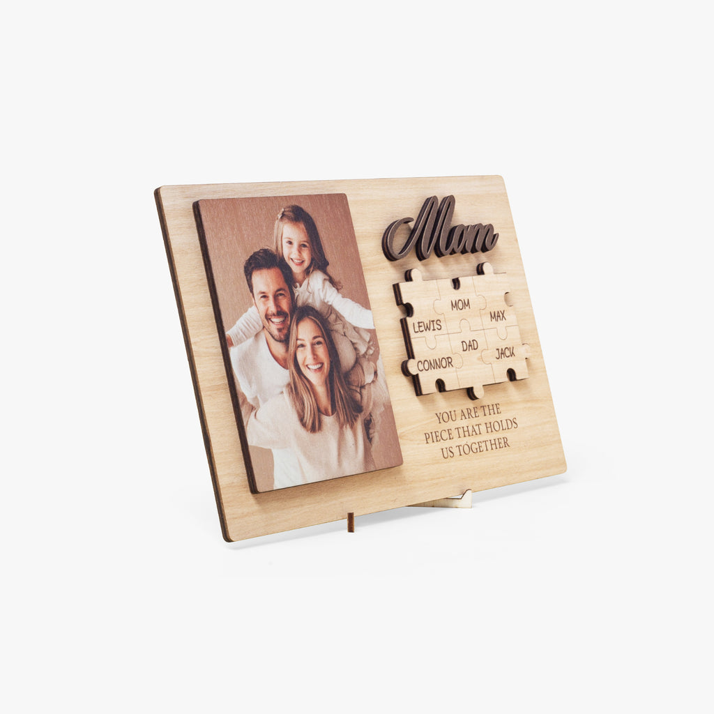 • Wooden frame board, tailor-made with your cherished photos and names.